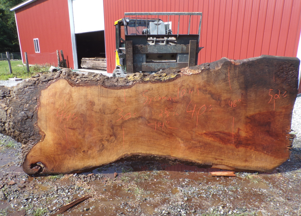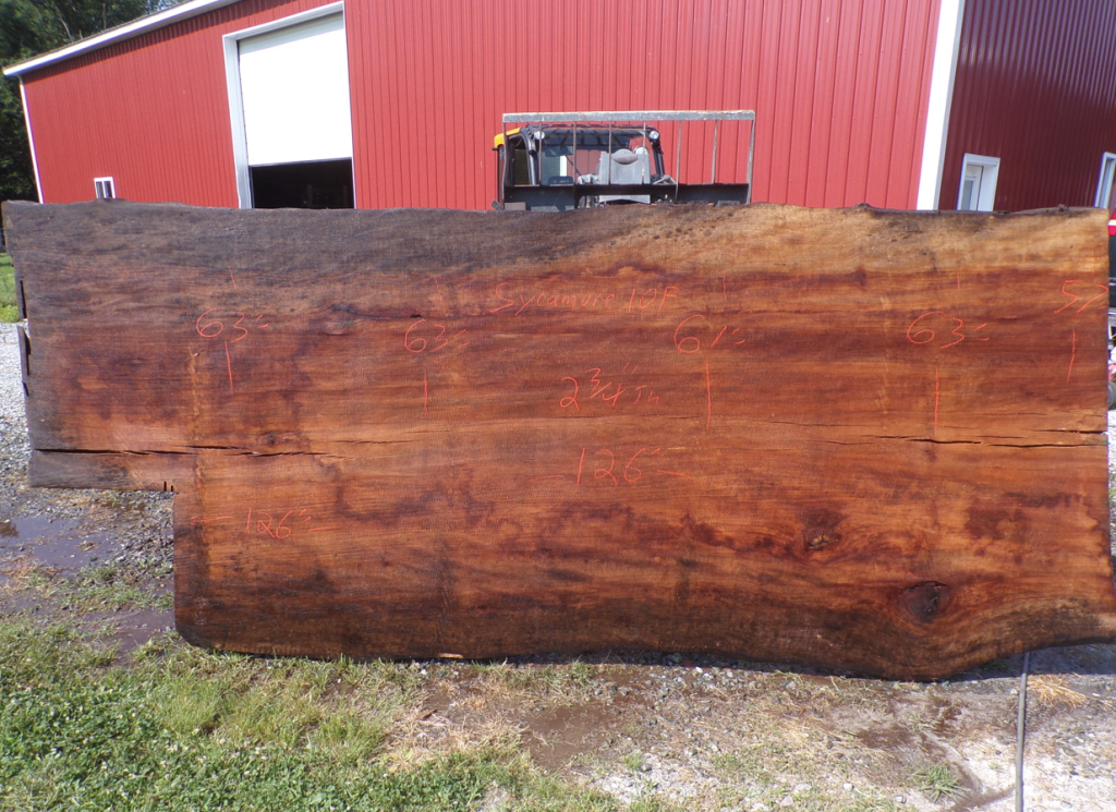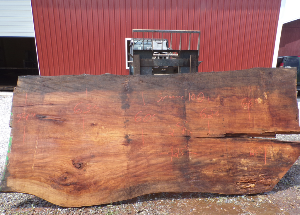 Sycamore slabs follow our standard pricing based on width and overall board feet in the slab. Board feet is estimated based on the rough cut thickness, 3 width measurements, and 1 length measurement. The cost of the sycamore slabs above does not include flattening and sanding.
