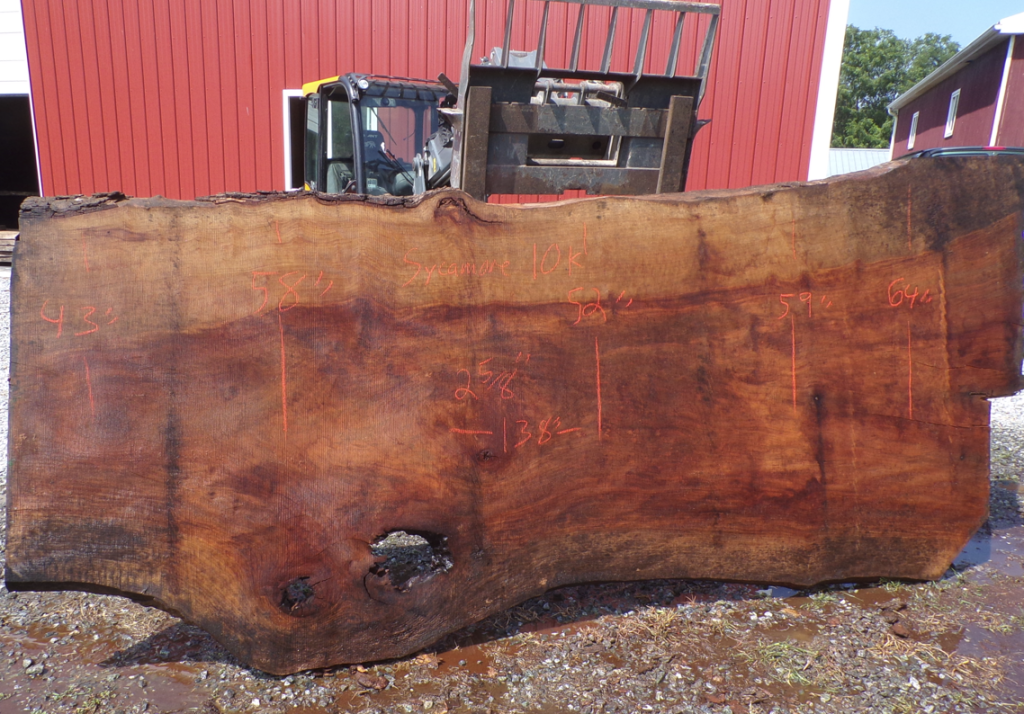 Live Edge Sycamore Slab 10 O 10′ x 54″ – 66″ Large table slab