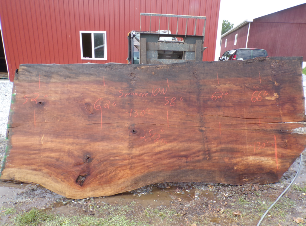Live Edge Sycamore Slab 10 N 10′ x 52″ – 62″ Large table slab