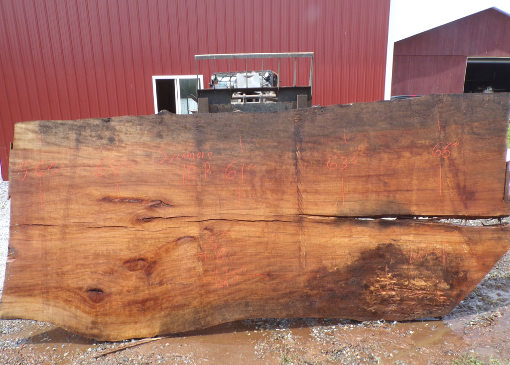 Live Edge Sycamore Slab 10 P 10′ x 56″ – 66″ Large table slab