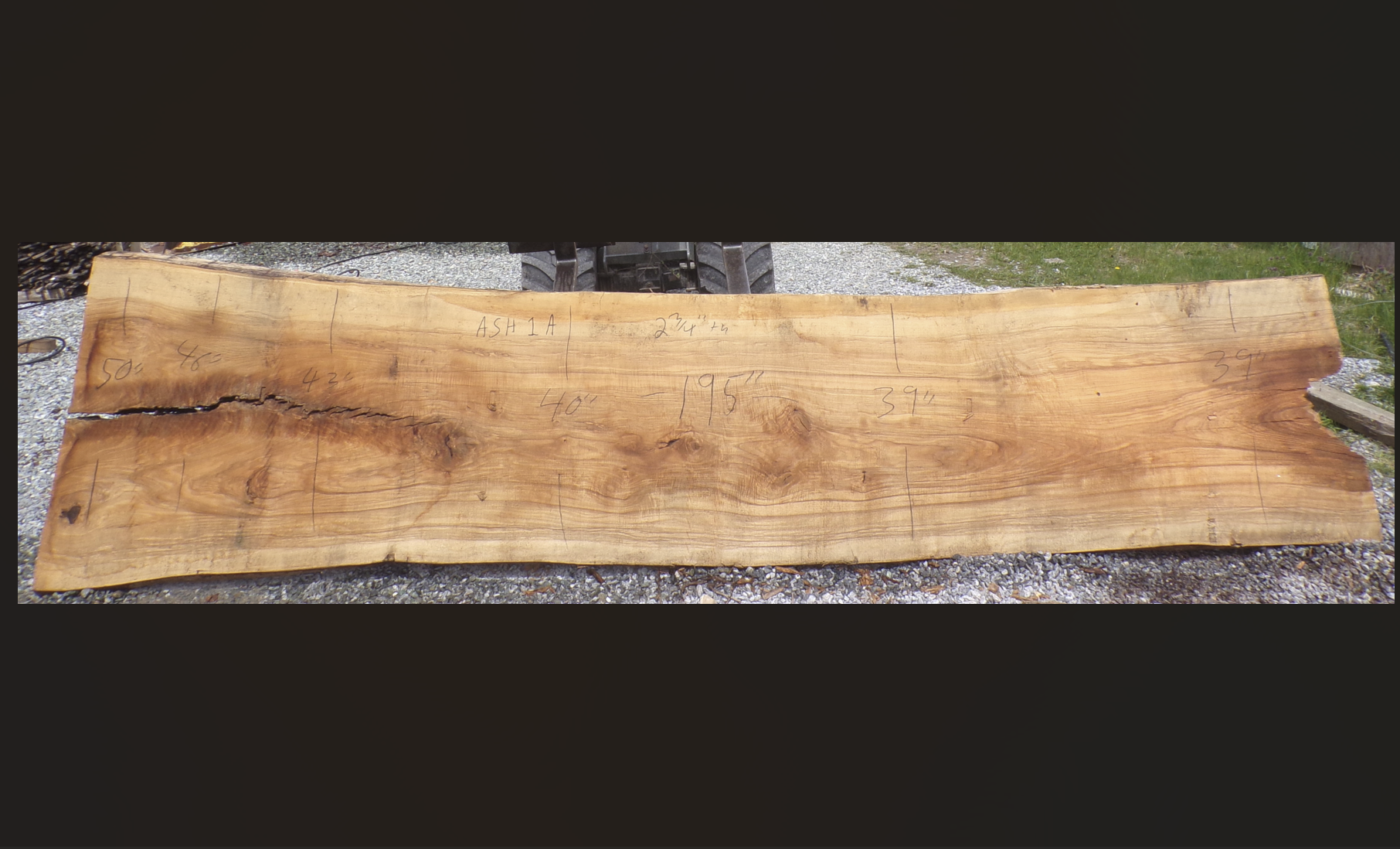 Live Edge Ash Slab 1A – 16′ x 39″ – 50″