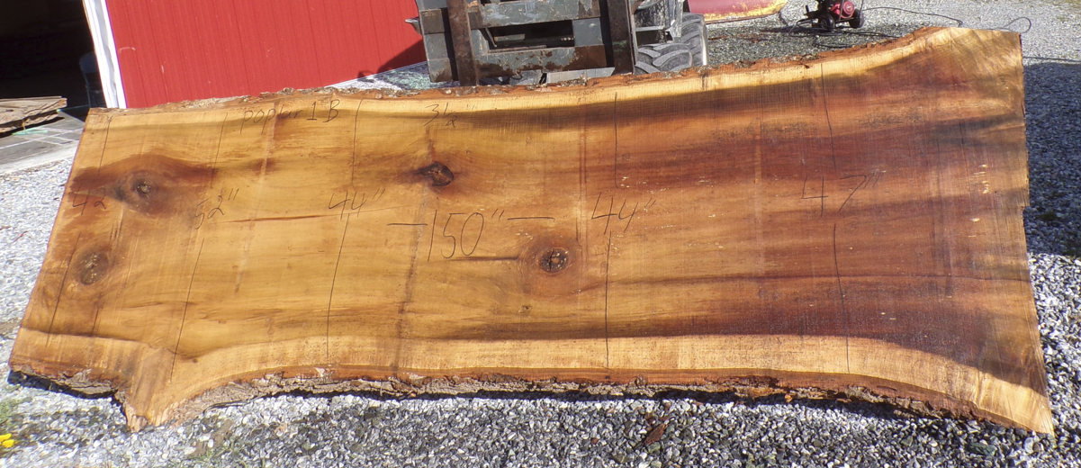 Live Edge Poplar Slab 1B – 12′ x 42″ – 50″